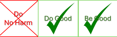Unintended consequences. This is the collateral harm caused by our actions to others, or the world around us. Great care and consideration is needed to assess the indirect consequences of our actions. The questions to be considered are cascading and expanding. If I do this, then what are the likely outcomes? What harm will those outcomes do? What subsequent events are they likely to cause? What harm will those subsequent events cause and so on? Doing harm can be minimised through predetermined action, and or considered action.