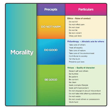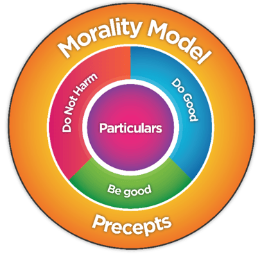 The ‘Morality Model’ shows the interaction between morality, its ‘Precepts’ and ‘Particulars.’