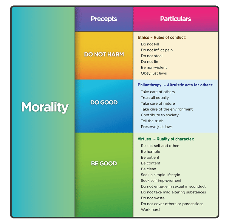 Moral rules of conduct are an articulated set of constraints or actions as needed to conform to essential moral behaviours. They guide us away from causing harm to others or the world around us. They provide a quick and easy reference of things ‘to do’ and ‘not to do.’