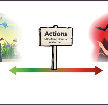 Actions. Morality is applied through action. Our actions are something done, or something performed, either good or bad.